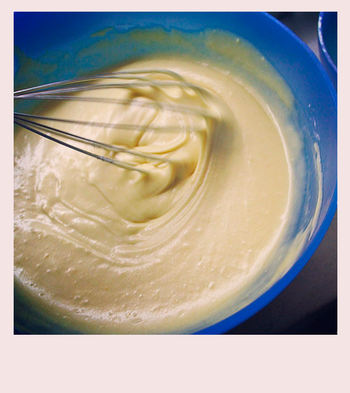 8. Mientras se hornean los bizcochos preparamos la crema: 250 g. de mantequilla mezclada con el azúcar glas hasta que quede bien integrado. Después echamos la leche y seguimos removiendo.