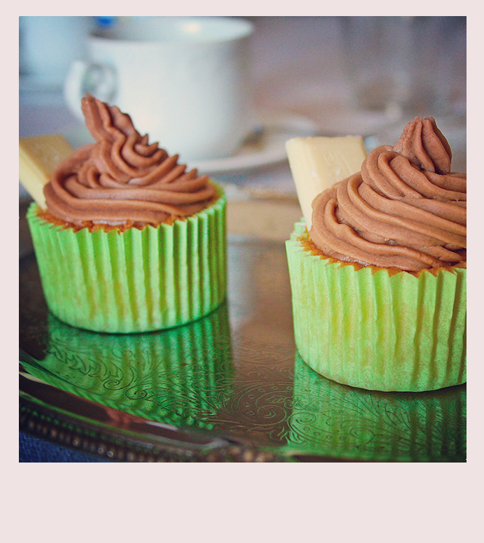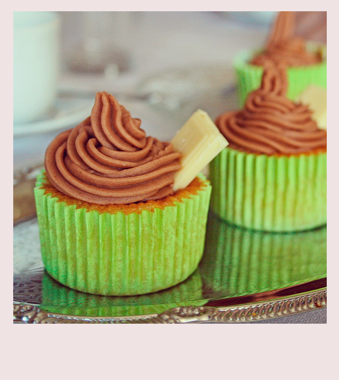 Al día siguiente ya tenemos la crema sólida y lista para decorar los bizcochos. La crema debe colocarse fría para que esté dura y tome forma, si no queda deshecha y mustia ... además que es más agradable comer sólida que cremosa. Así que al día siguiente y con la crema sólida, manga pastelera en mano y a hacer fuerza!! y para decorar un poquito más yo puse onzas de chocolate blanco. Aquí tenéis el resultado!