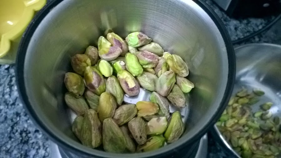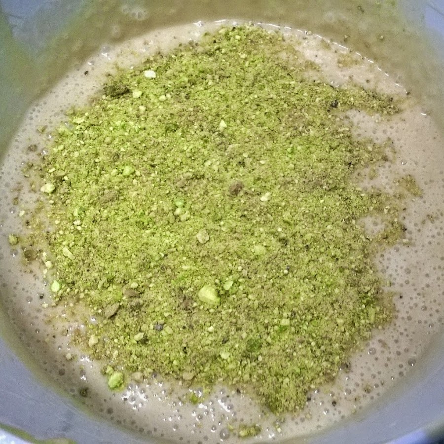7. Por último, añadimos el pistacho incorporándolo a la masa con suaves movimientos envolventes.