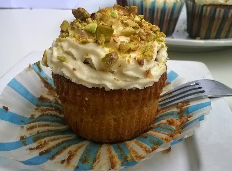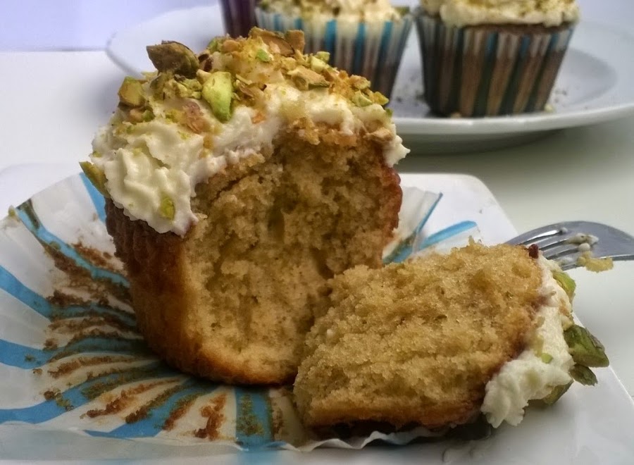 Dicho esto, no sorprenderá saber, que estos cupcakes tuvieron un éxito atronador en nuestra pequeña republica independiente. A mi también me gustaron, pero es que tienen pistacho. Y el pistacho, es el pistacho. El fruto seco más elegante de todos, y la cosa verde más deliciosa de la tierra.