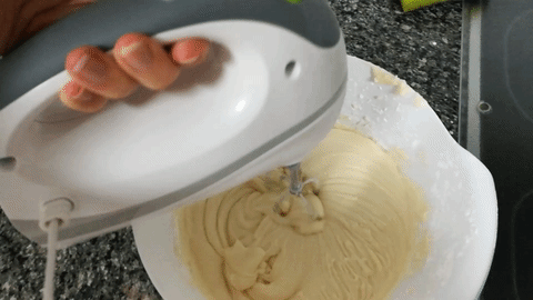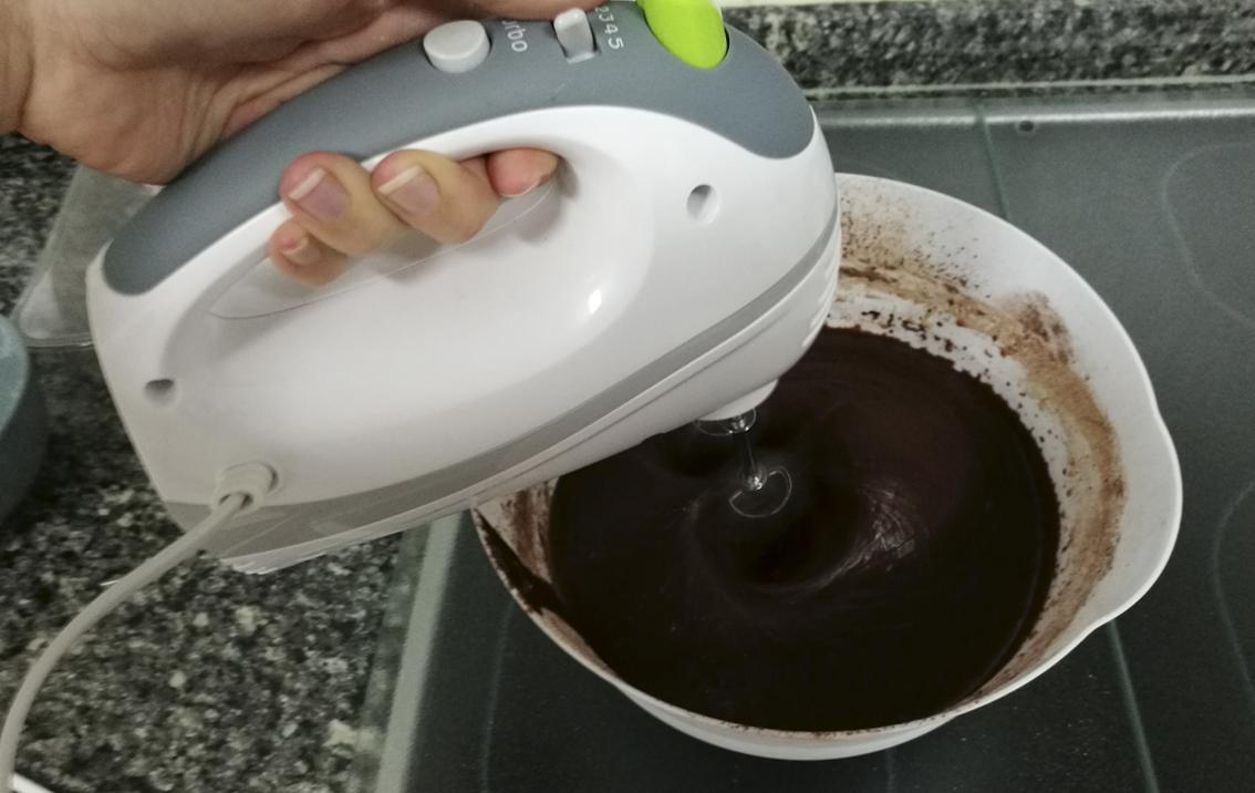 Mezclamos todo bien con las varillas (en mi caso eléctricas) hasta que no queden grumos.