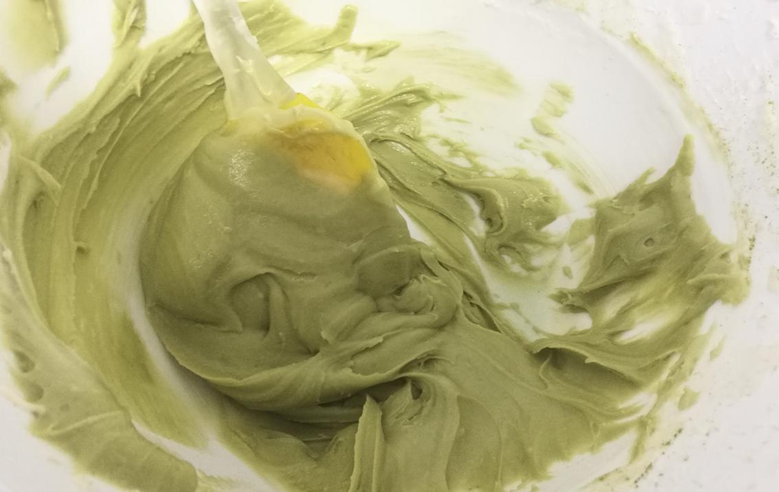 Le añadimos después el té Matcha tamizándolo para que no haya grumos y mezclamos hasta que quede uniforme.