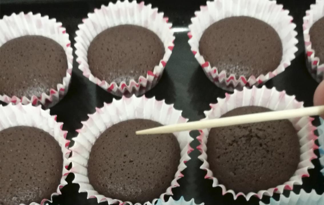 Pinchamos el cupcake con un palillo, cuando salga limpio es que ya están listos, retiramos del horno.