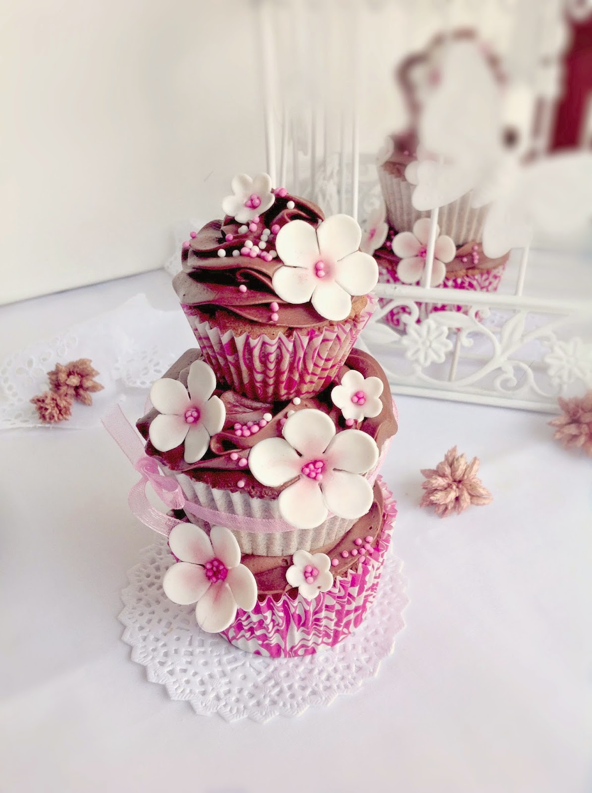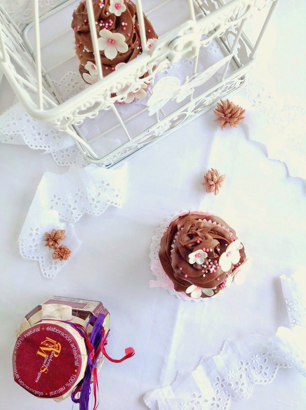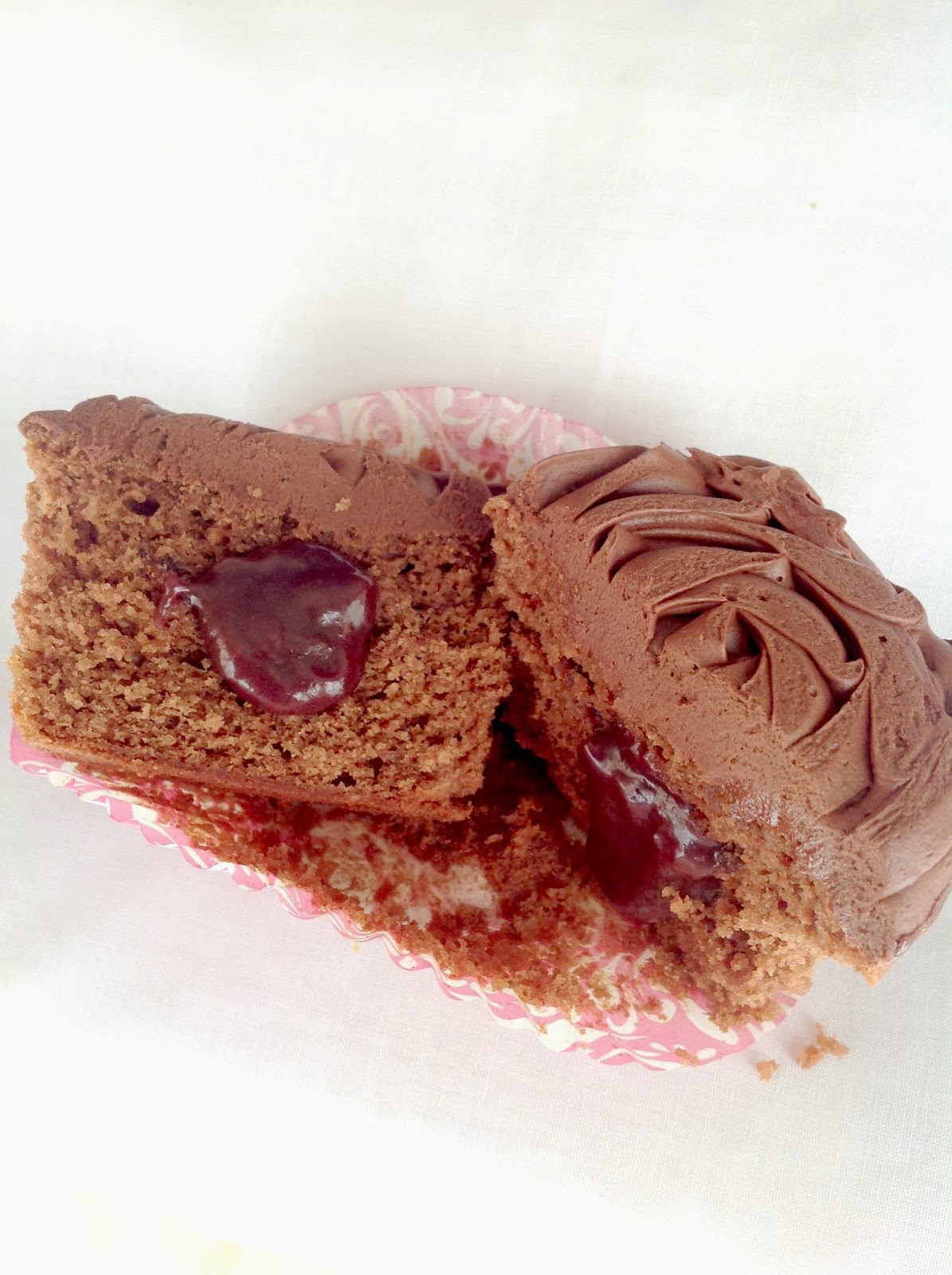 CUPCAKES DE CHOCOLATE CON MERMELADA DE MORAS, CHOCOLATE BLANCO Y KIRSCH