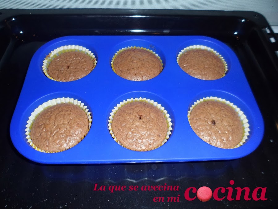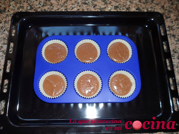 Cuando las tengamos rellenas, meteremos el molde al horno y lo tendremos allí durante 20 minutos a 180 º (previamente ya precalentado). Para saber si está hecho basta con meter un palillo y si sale limpio es porque ya están listos para sacarlos.
