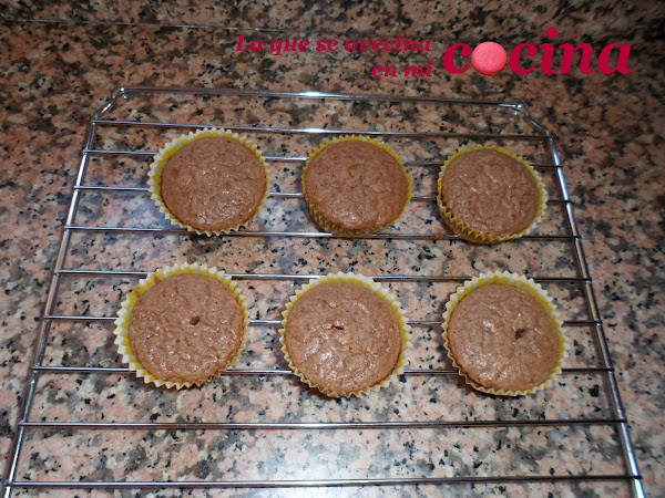 Cuando nuestros bizcochitos estén listos, deben tener una apariencia plana y no sobresalir mucho de la cápsulas en las que van metidos. Los dejaremos enfriar unos 5 minutos en el molde para luego pasarlos sobre una rejilla y dejar que se enfríen totalmente.