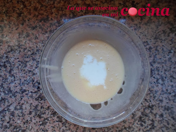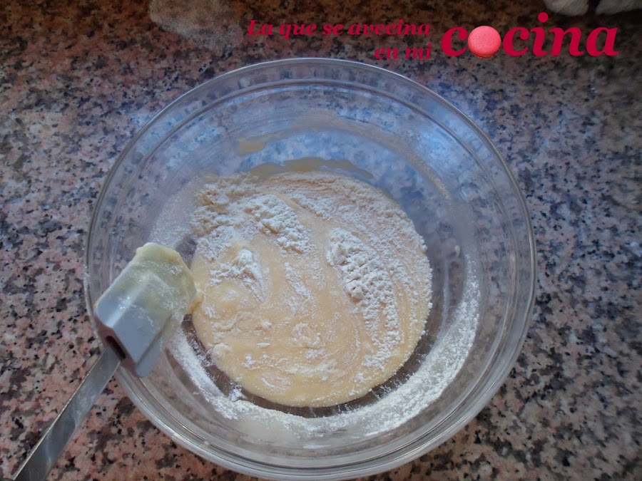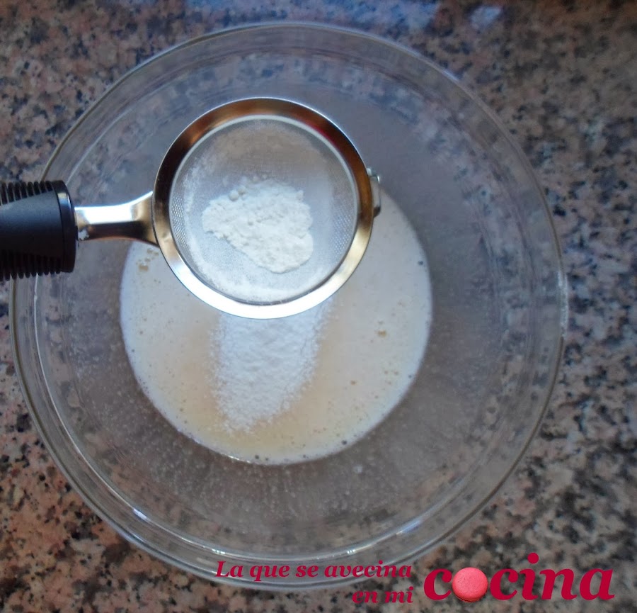 Cuando se haya mezclado bien, añadiremos la leche y el extracto de vainilla y seguimos batiendo. Ahora tamizamos el resto de la harina y batimos lo suficiente para que la masa que resulte no tenga grumos.