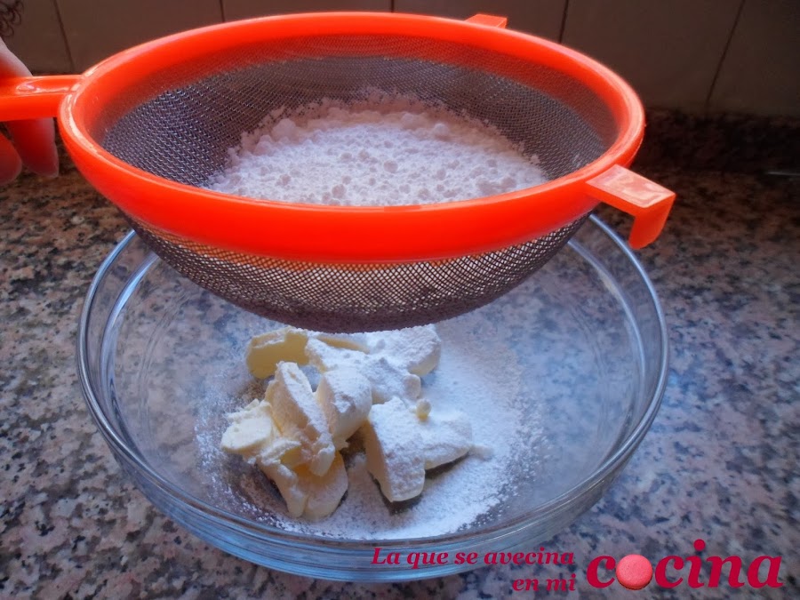 Mezclamos el azúcar glas y la mantequilla.