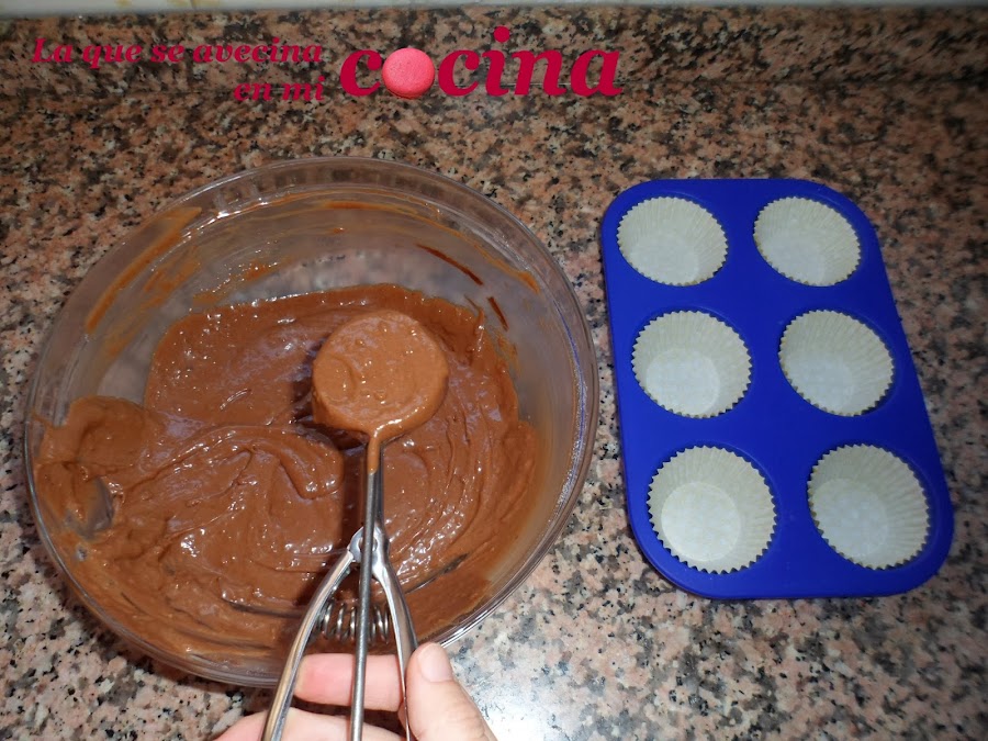 Ponemos las cápsulas de los cupcakes en los moldes y los rellenamos con la ayuda de una cucharada de helado. Así nos aseguramos que todas las cápsulas tengan la misma cantidad. Eso sí, no la llenéis más de 2/3 de su capacidad o si no os subirán mucho y más que cupcakes parecerán magdalenas.