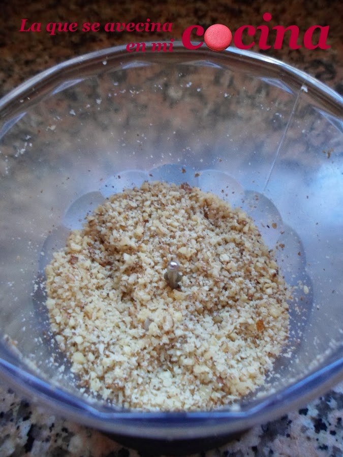 Para terminar nuestra masa del bizcocho sólo nos quedara picar las nueces al gusto (a mí me gusta bien picaditas para no encontrarme los trozos) y removerlo bien con la masa ya chocolateada.