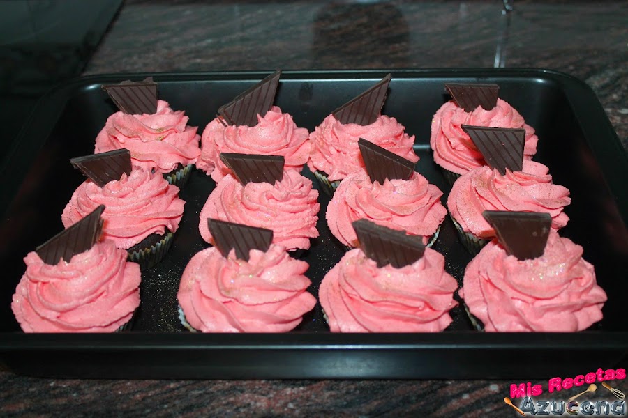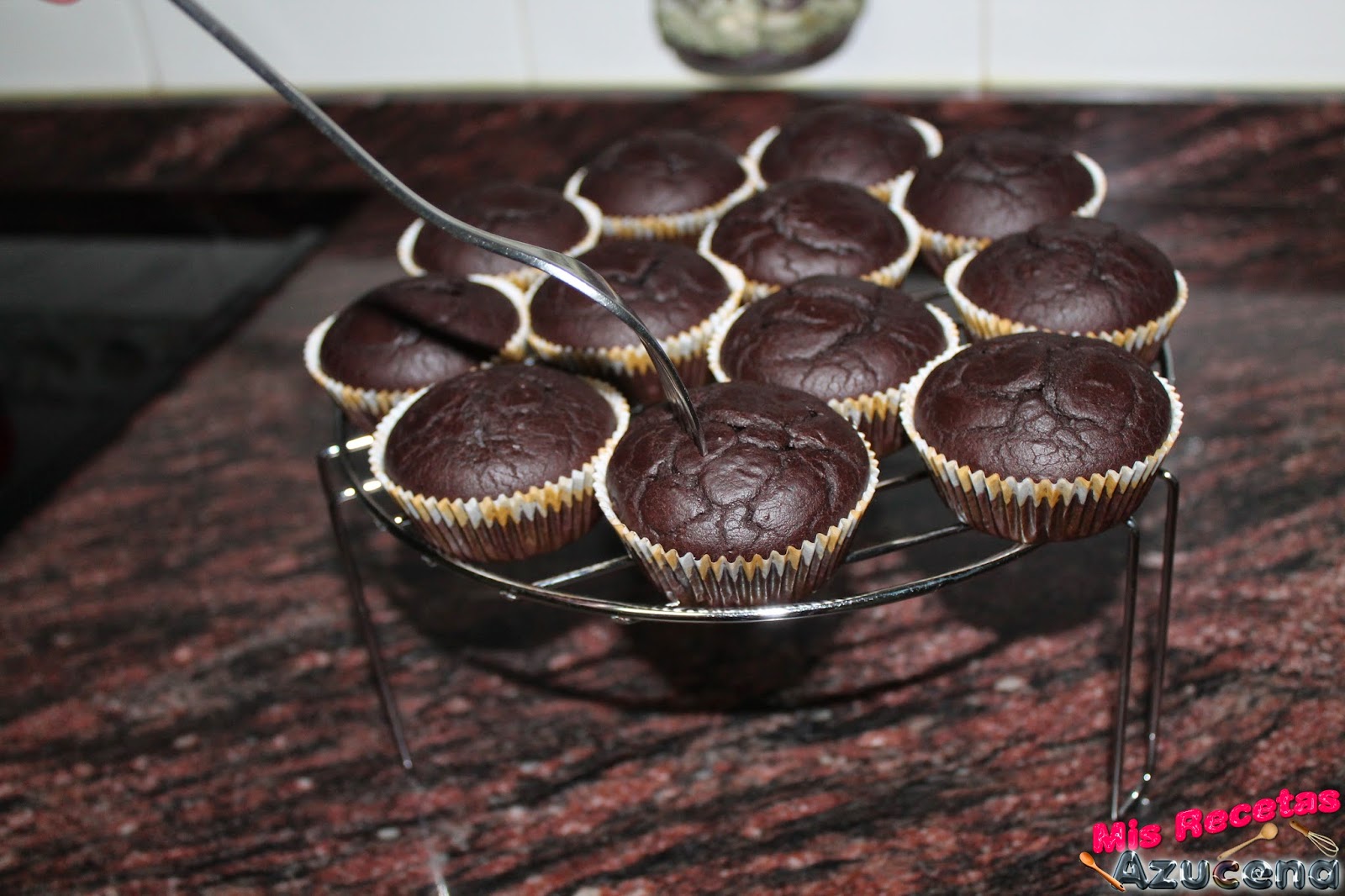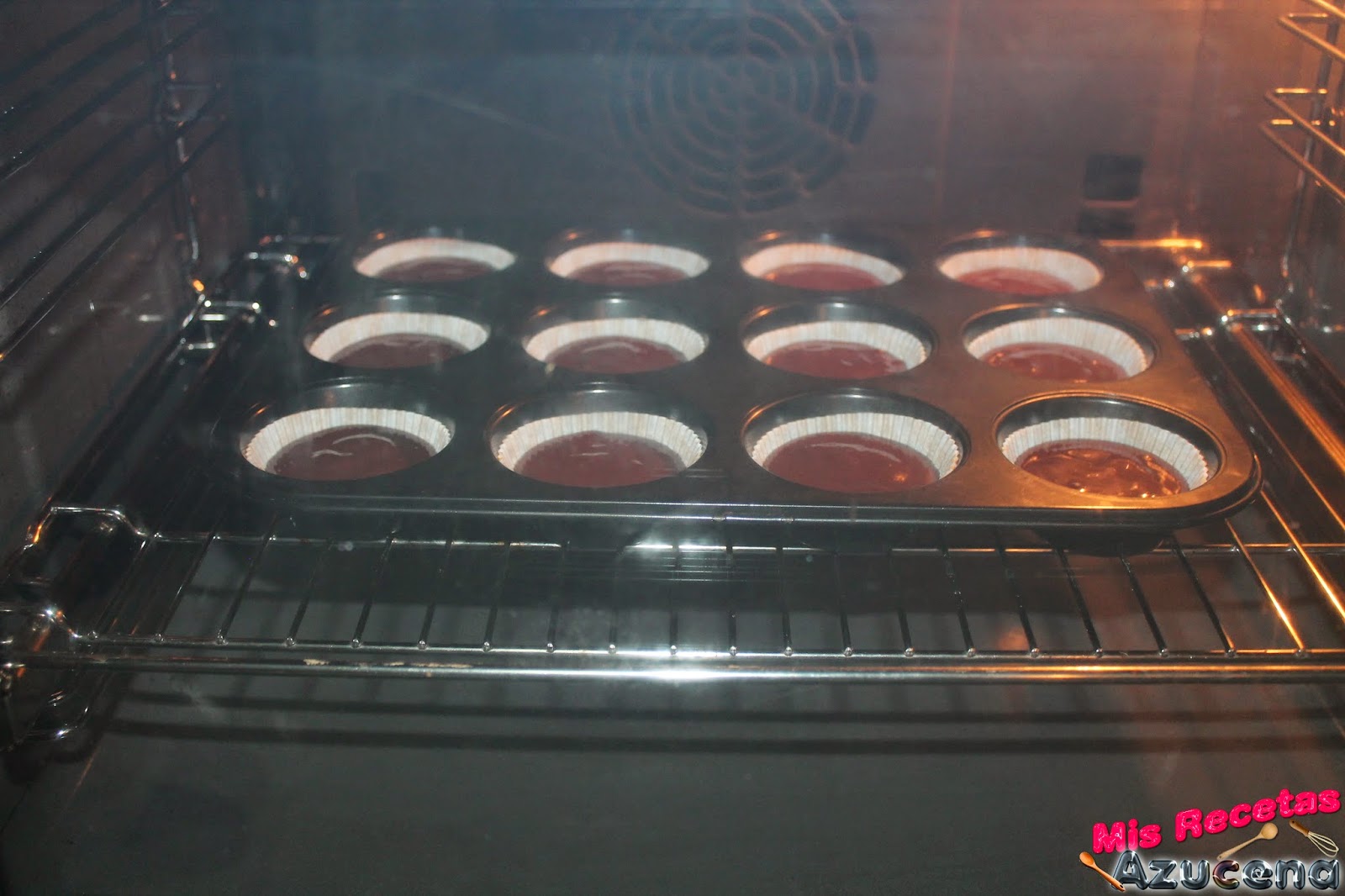 Una vez las tengamos todas rellenas, meteremos en el horno la bandeja y la dejaremos 15 minutos, una vez que pase este tiempo para comprobar que están hechas sin sacar del horno pinchamos con un palillo en el centro de un cupcake y si sale limpio está listo, de lo contrario déjalo unos minutos más.