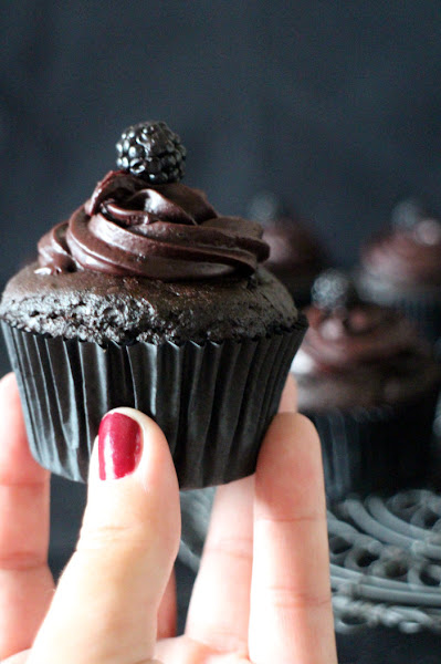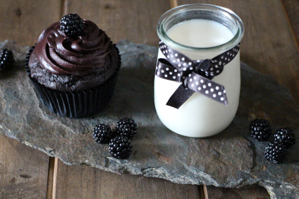 Haciendo honor a los pueblos negros, de los que os hablaba en la entrada de la mousse de cheesecake de moras silvestres, la primera receta que preparaba este año con moras silvestres, los papelitos de los cupcakes también son negros, al igual que la piedra que me traje de recuerdo, que cogí en el campo y que he utilizado a modo de bandeja.