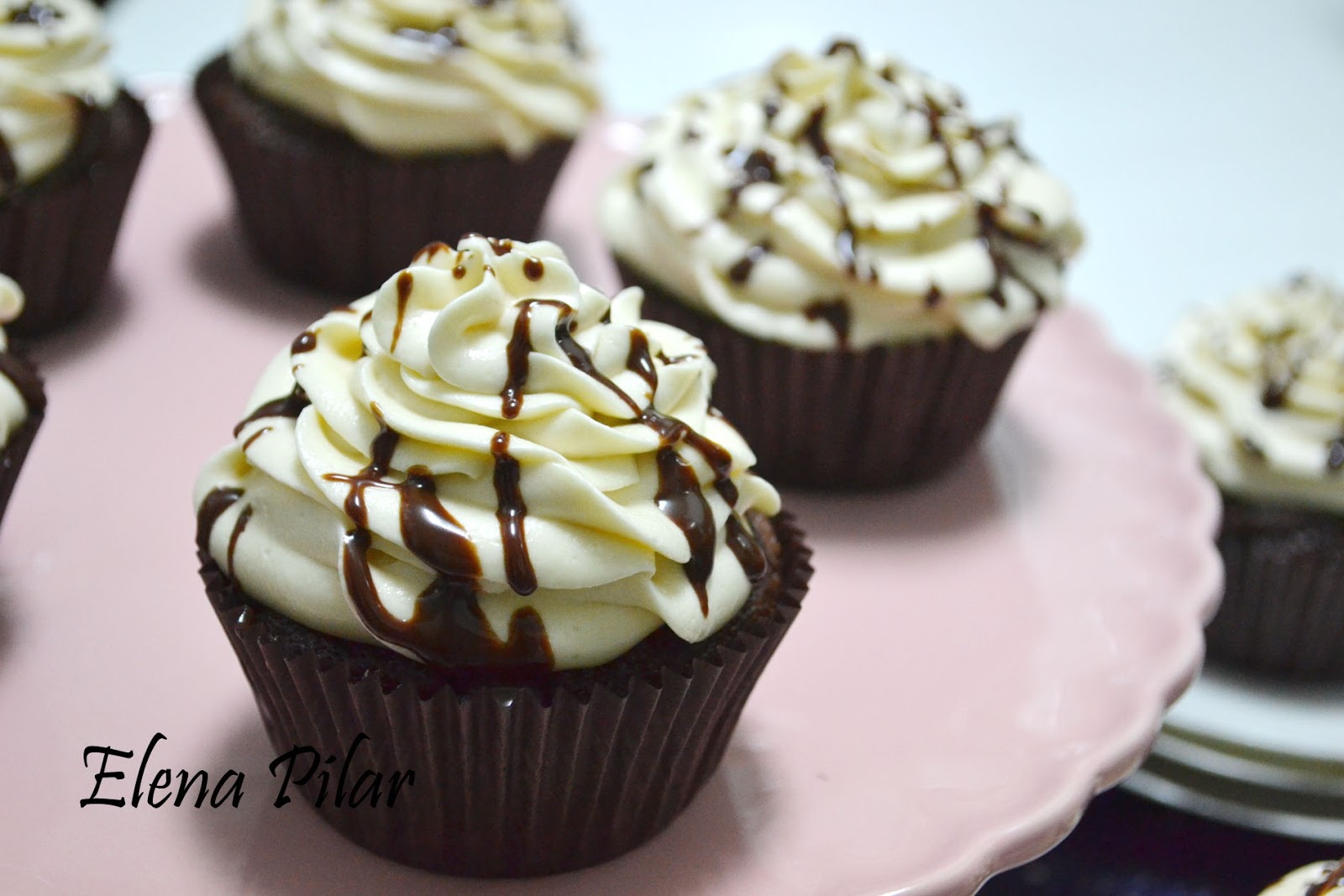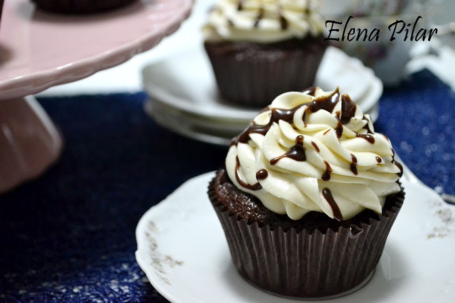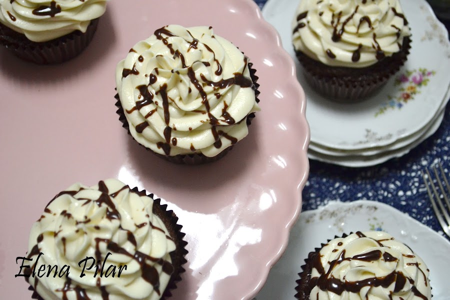 Hice unos cupcakes de chocolate con mi masa preferida. La que ya utilicé para los de chocolate y naranja y para los de bombones Mon Chèri. Solo sustituí un poquito de leche por Baileys.