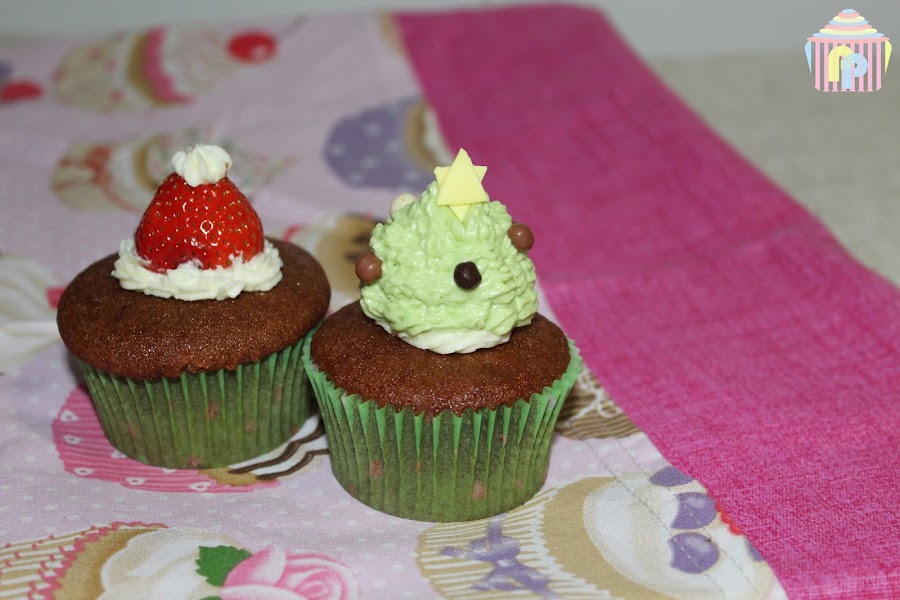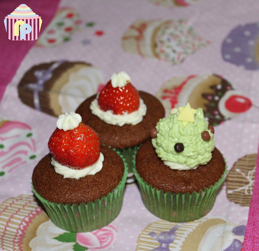 Y ya tenemos nuestros deliciosos cupcakes de chocolate y fresas, decorados especialmente para Navidad. Espero que os gusten.