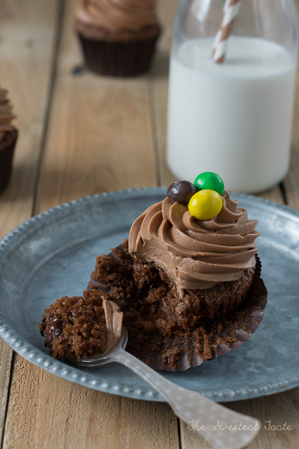 La textura del cupcake os recordará más a la de un brownie ligerito que a la de un cupcake en sí. Vamos, a mí me ha parecido así, pero es que se deshace en la boca.