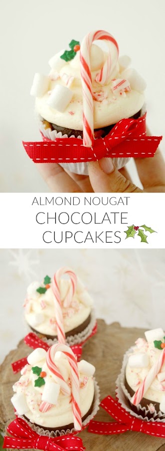 ALMOND NOUGAT CHOCOLATE CUPCAKES WITH WHITE CHOCOLATE BUTTERCREAM
