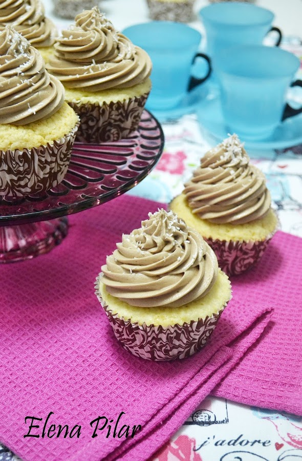 El sabor de la masa de los cupcakes también es muy bueno: de coco y con un toque de extracto de almendra. Pero, os tengo que ser sincera, he probado masas más jugosas que esta. Aunque os aseguro que el sabor es delicioso. De hecho, cada día que los he comido no he podido evitar comer, al menos, dos. Mi madre, caso aparte, puede llegar a ingerir tres o cuatro de una sentada; eso sí, después de haber tomado un primer (y único) plato ligerito, como unas verduritas hervidas o una sencilla ensalada.