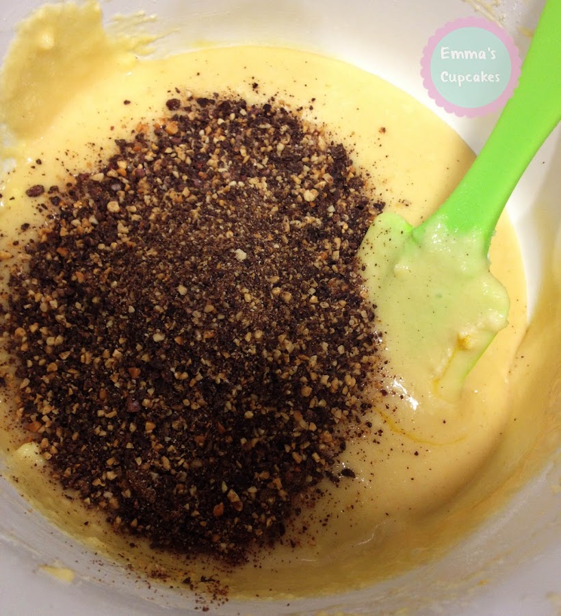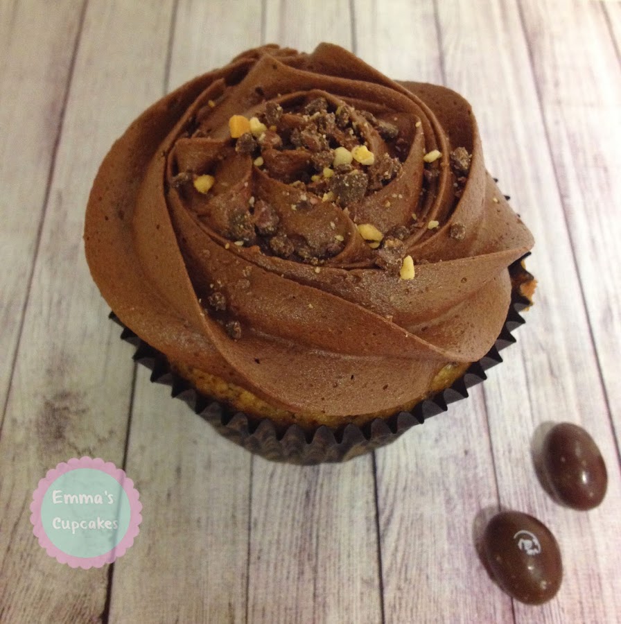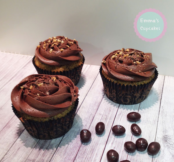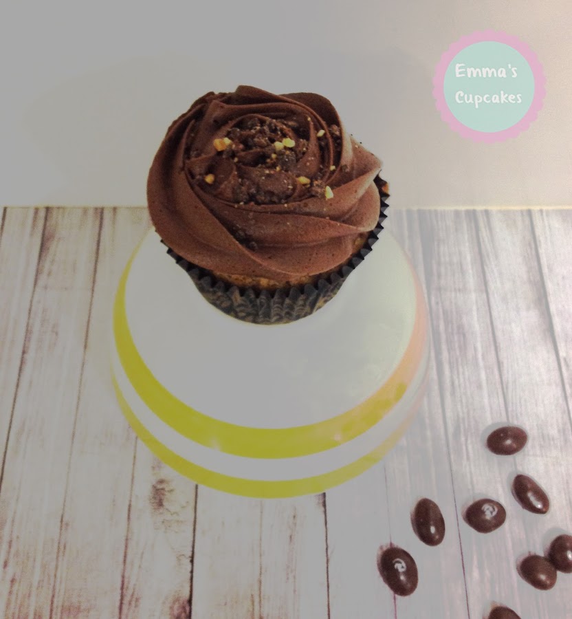 Tamizamos el icing sugar con el chocolate en polvo y mezclamos en el bol de la batidora con la mantequilla a temperatura ambiente. Batimos unos 5 minutos o hasta que veamos que queda una crema. Si lo queráis más suave, podéis añadirle más mantequilla. Ponemos la crema en la manga y decoramos, yo con la boquilla 1M de Wilton. Trituramos un puñado de Conguitos y añadimos como toque final a los Cupcakes.