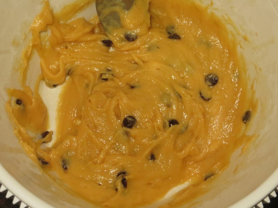Batimos el azúcar con los dos huevos, le añadimos la mantequilla derretida y la harina tamizada. Derretimos la mantequilla de cacahuete y se lo añadimos a la mezcla, junto con las gotas de chocolate.