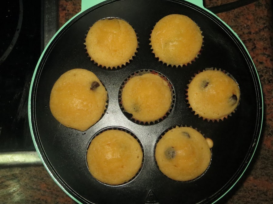Calentamos nuestra máquina para realizar cupcakes, colocamos la mezcla en nuestros moldes y los metemos a la máquina durante diez minutos. Una vez listos llega la hora de decorarlos, derretí un poco más de crema de cacahuete y les puse por encima, luego les añadí figuras de azúcar, virutas de chocolate, canela, azúcar glass…