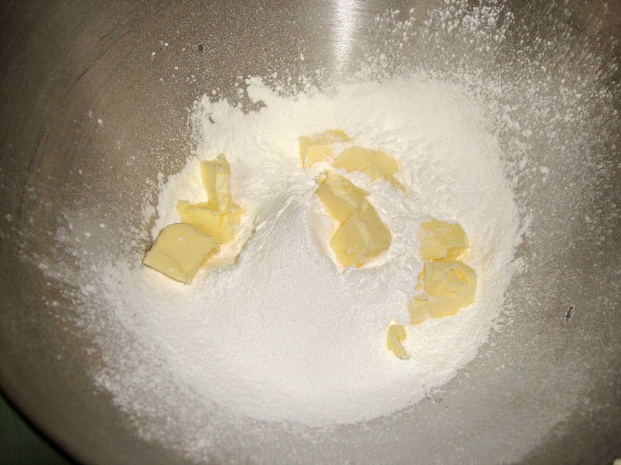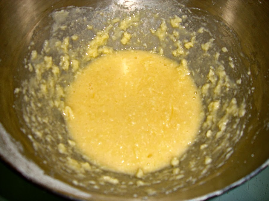 En un bol se pone el azúcar con la mantequilla y se bate hasta que haya desaparecido la mantequilla ( el azúcar sigue siendo visible)