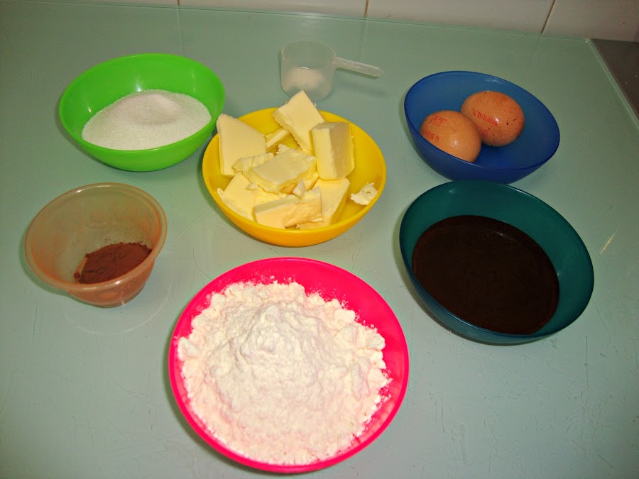 Se tamiza la harina con la levadura y el cacao. En un bol se pone la mantequilla con el azúcar y se bate hasta que este bien integrado.