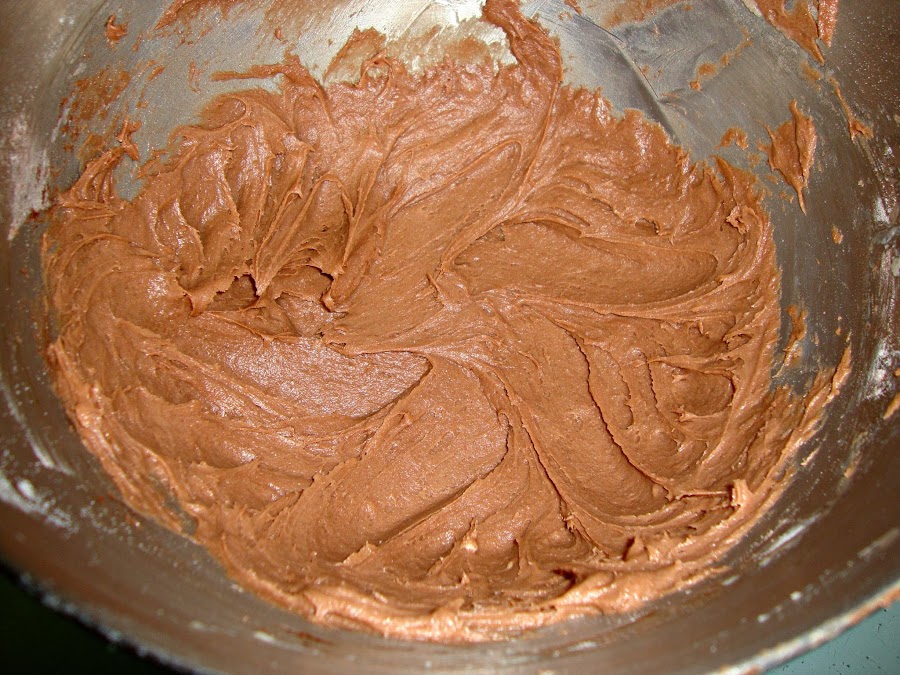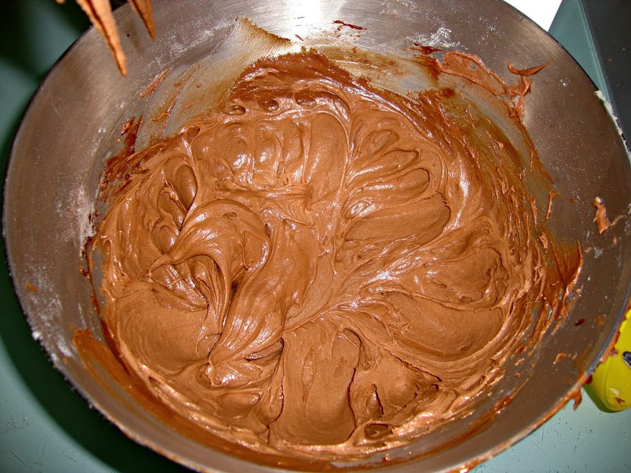 Luego se añaden los huevos uno a uno, la mezcla de harina y finalmente la crema de chocolate.