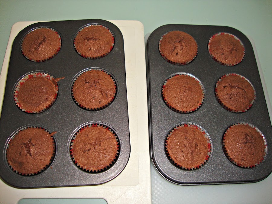 Se ponen las cápsulas de las magdalenas en los moldes y se reparte la mezcla. Luego se introduce en el horno caliente a 170º durante 20 minutos.