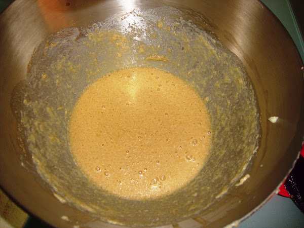 y luego vamos añadiendo los huevos uno a uno (hasta que uno no este integrado no añadimos el siguiente)