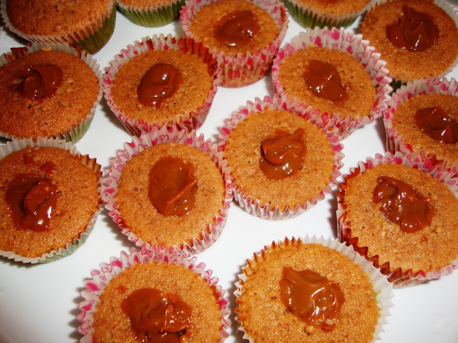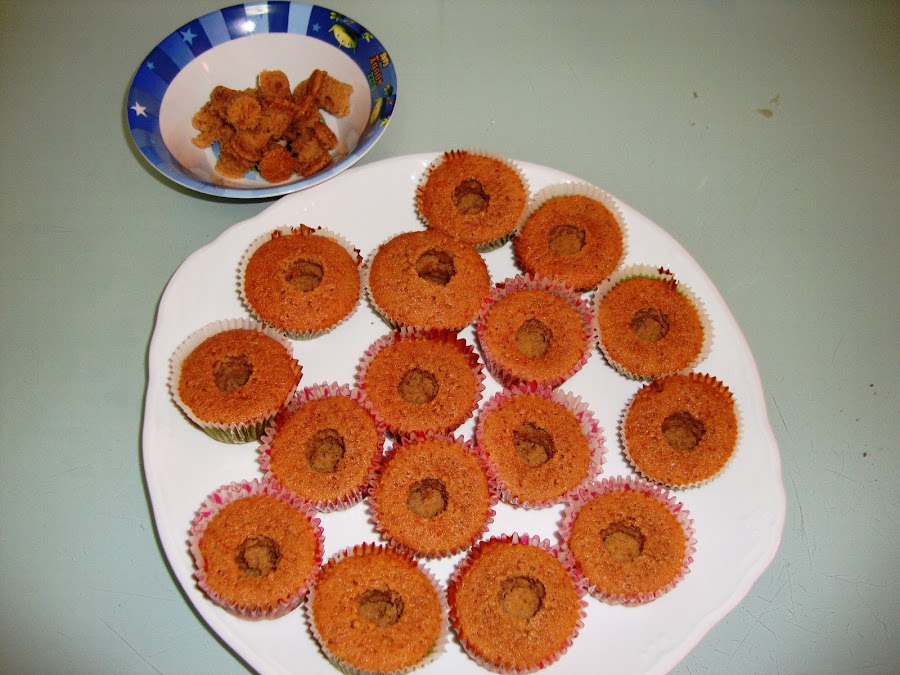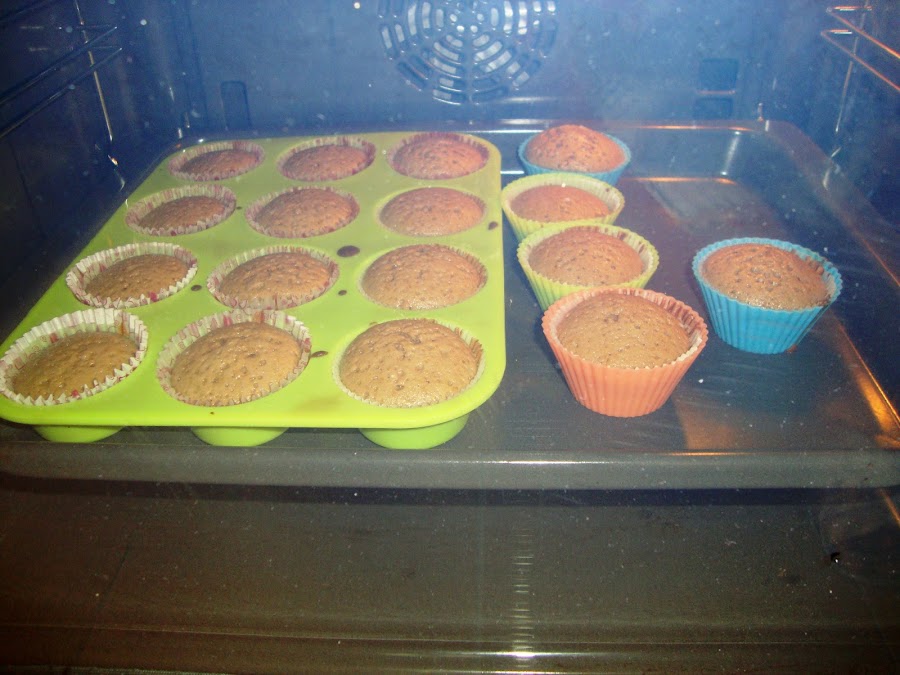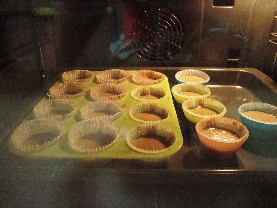 Lo ponemos en las cápsulas y metemos en el horno (caliente) a 180º durante unos 20 minutos.