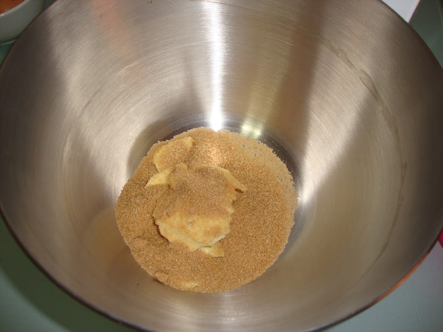 En un bol ponemos la mantequilla con el azúcar y batimos hasta que quede bien integrada.