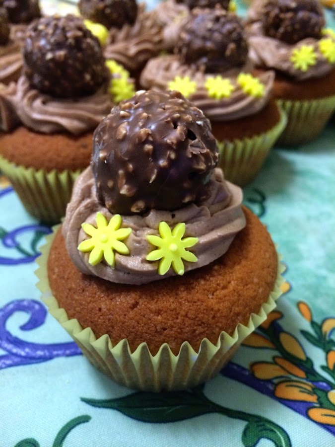 Estos cupackes no solo tienen un bomboncito Ferrero encima, también están rellenos con otro. Por eso decidí no sobrecargarlo tanto con la buttercream y que los bombones fueran los auténticos protagonistas.