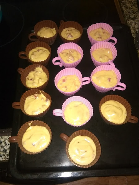 Repartimos la mezcla en los moldes que tengamos preparados llenando 2 trecios del molde,los intoducimos en el horno sobre 20 minutos, pero es acosejable vijilar ya que cada horno es un mundo