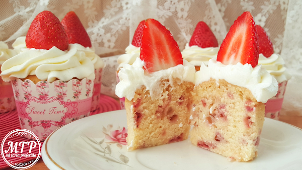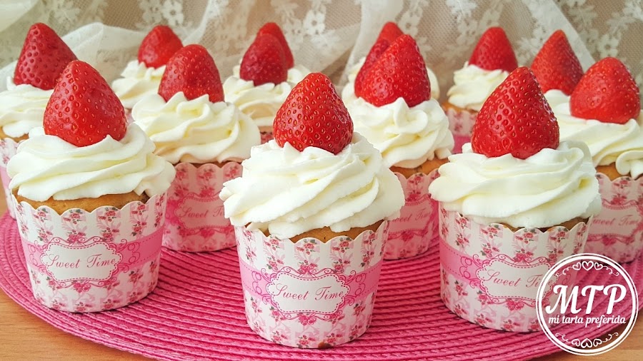 Así que ésta semana on traigo la receta de unos deliciosos cupcakes de fresas con nata (crema de leche), una combinación de sabores que funciona muy bien y que a mí personalmente me encanta.