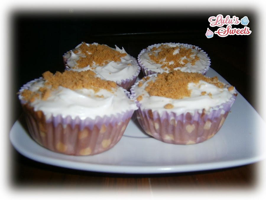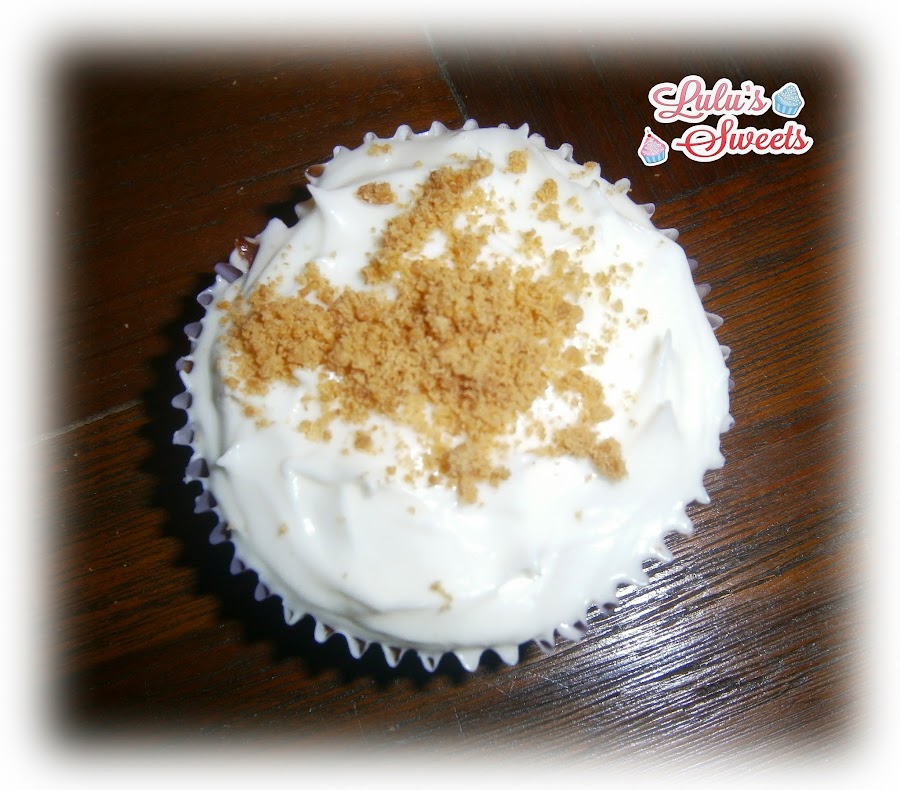 - Terminamos el decorado de los cupcakes espolvoreando las galletas Digestive trituradas por encima del glaseado.