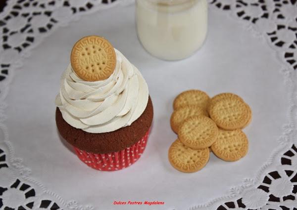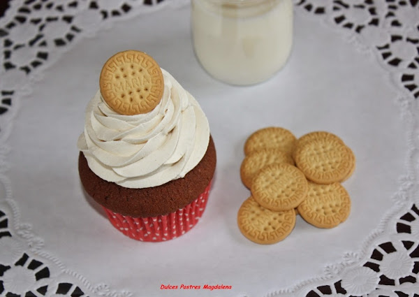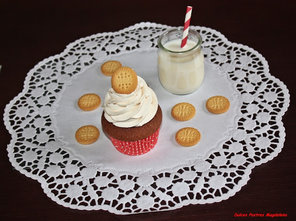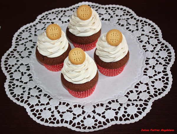 Además, las galletas maría dan mucho juego, se pueden comer con mermelada, miel, nocilla, dulce de leche, nutella, natillas, chocolate,?.un sin fin de combinaciones. Así que ya os podéis dar una idea de lo sabrosos que están estos cupcakes de galleta maría con un toque de chocolate.
