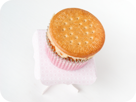Una vez tengamos listos y fríos los cupcakes y la buttercream preparada solo queda decorarlos. A mi me gusta hacerlo en plan rustico, pongo una cucharada generosa de la crema encima del cupcake y con una galleta maría entera la aplasto. Así me sirve para repartir la crema y la galleta me sirve de decoración, que queda super bonito y así también se sabe de que son ^^ un dos por uno!!