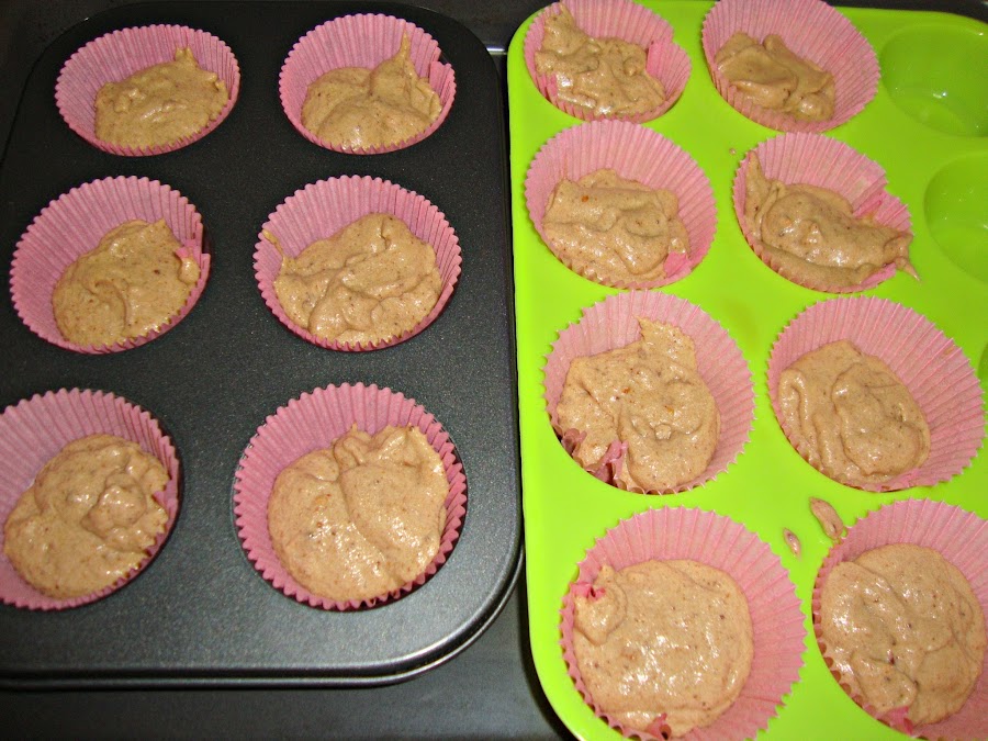 Se añade la masa a las cápsulas llenándolas hasta la mitad o un poco mas (no suben mucho) y se les mete en el horno caliente a 180º durante unos 18-20 minutos.