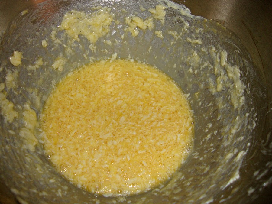 En un bol se pone la mantequilla con el azúcar y se bate hasta que este bien integrada, luego se van añadiendo los huevos uno a uno.