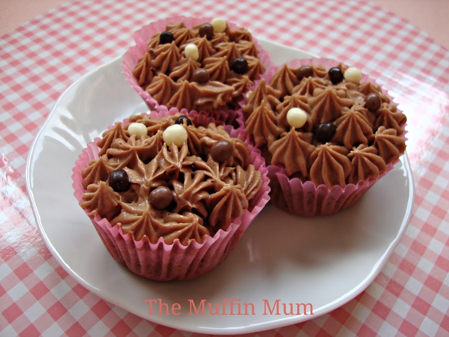 Cuando se sacan a los 4-5 minutos se les pasa a una rejilla hasta que se acaben de enfriar y luego se decoran al gusto. Yo en este caso las he cubierto con buttercream de chocolate con leche y unos topping de chocolate.
