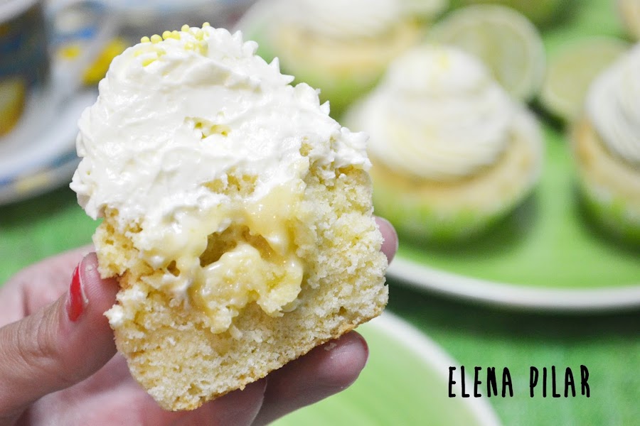 Espero que a vosotros también os gusten, porque no son nada empalagosos ni pesados. La crema que los cubre es de queso -yo he puesto tipo mascarpone, pero podéis sustituirlo por uno de untar-, con lo que resulta mucho más suave y ligera que una buttercream, y el curd de lima con el que los he rellenado -el mismo que utilicé para la tarta de melaza, jengibre y lima-, los hace aún más apetecibles.