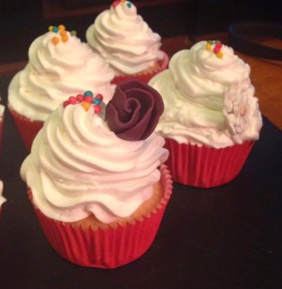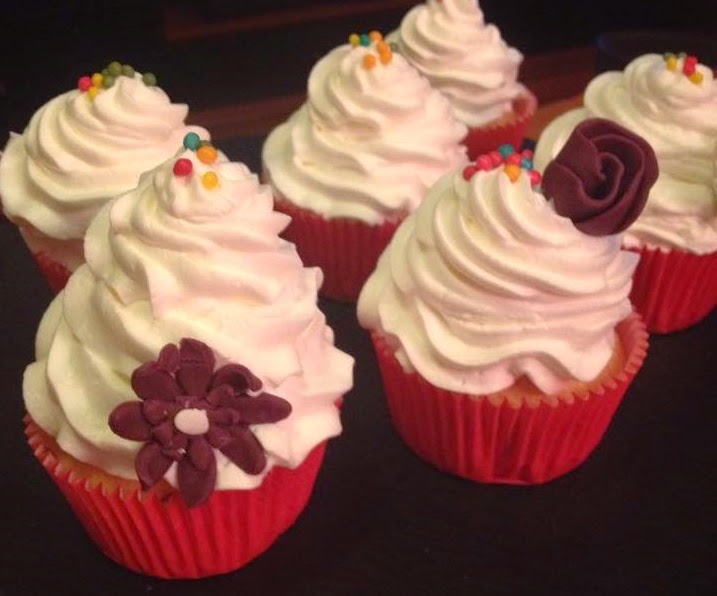 Poner la nata montada (crema de leche) en una manga pastelera y decorar los cupcakes