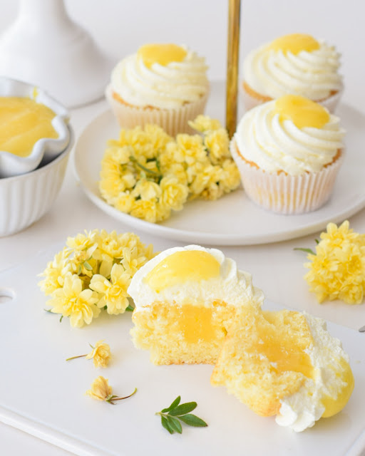 Y tras este tostón, os presento los cupcakes que os van a hacer quedar como auténticos reyes. Porque lo tienen todo, la jugosidad del bizcocho y la cremosidad del lemon curd, que juntos os van a hacer enloquecer.