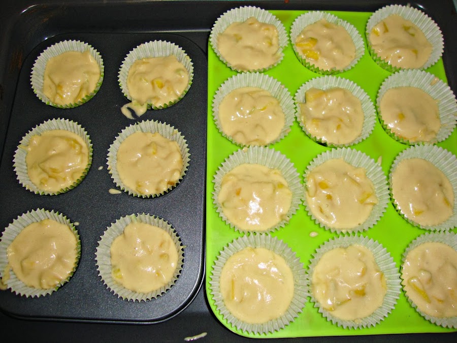 Después se reparte la mezcla en las cápsulas de las magdalenas y se mete en el horno caliente a 175ºC durante unos 25 minutos.