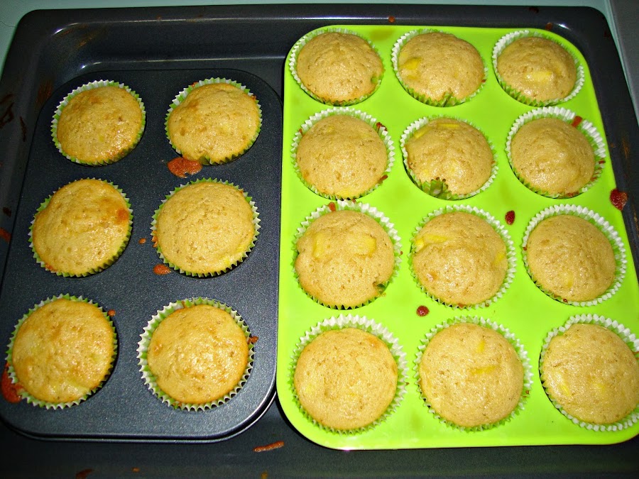 Con las cantidades que indico yo hice 18 cupcakes pero el numero despenderá también del tamaño del mango. Los ingredientes son: