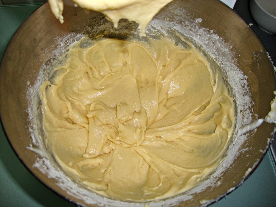 Agregamos los huevos uno a uno, y luego vamos añadiendo alternando la mezcla de harina con el yogur.