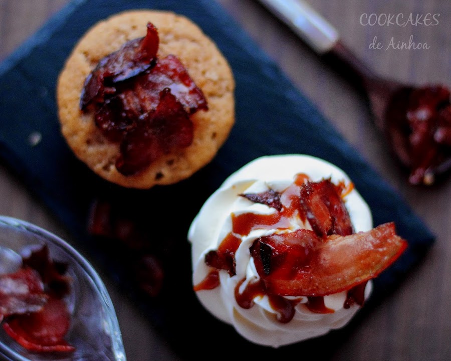 Desde hacía un tiempo, rondaba en mi cabeza la idea de preparar unos cupcakes que combinasen dulce y salado, pero que a la vez los sabores llegasen a compaginar bien entre ellos. Personalmente, no es que me llamen mucho la atención los cupcakes salados que comunmente vemos en las pastelerías creativas como atún y mayonesa, frankfurt o variados así... no sé, a mi, como os he dicho arriba, me mola el riesgo... quería algo, más raro! jajajajaja