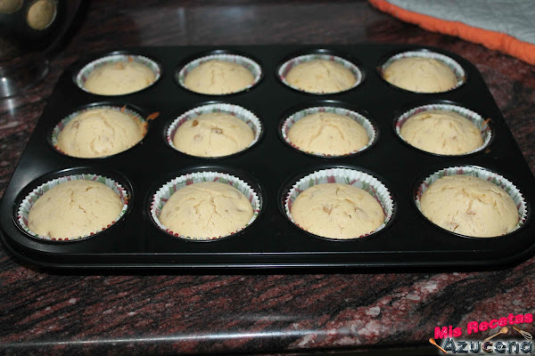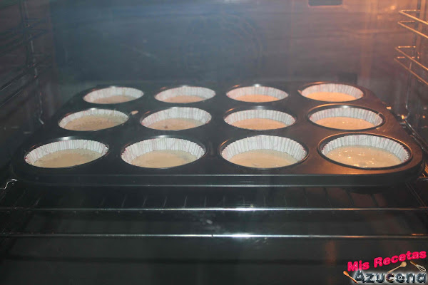 Pasados los 20 minutos comprobaremos que están listos sin sacarlos del horno pincharemos en el centro de uno con ayuda de un pincho o un cuchillo, si sale limpio están listos de lo contrario cerraremos el horno y los dejaremos unos minutos más.