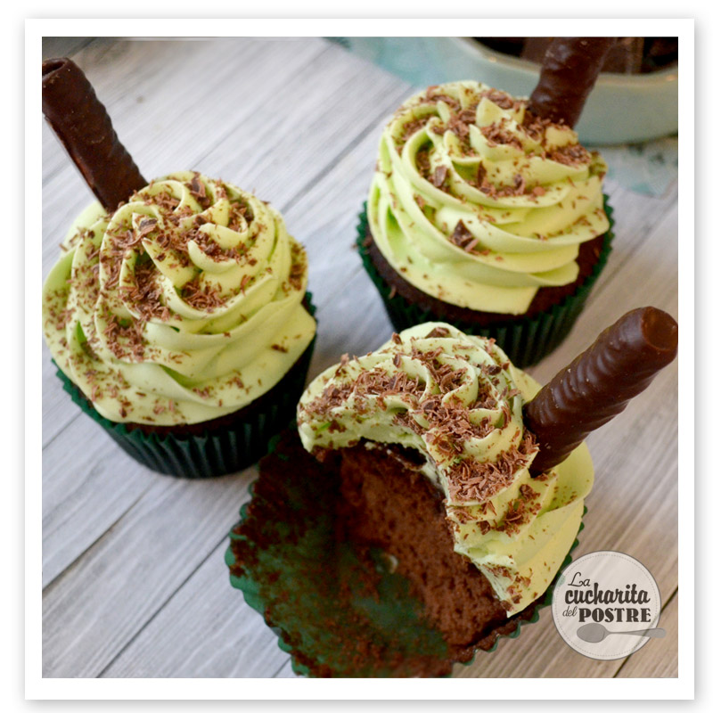 Esta semana te traigo una combinación de sabores que me recuerda mucho a las chocolatinas After Eight, cuadraditos de chocolate muy finitos rellenos de menta, que comía de vez en cuando de pequeño pero que era como comerse algo prohibido, algo reservado solo para los mayores. Espero que te gusten estos CUPCAKES DE MENTA Y CHOCOLATE. Disfruta con el sabor intenso del chocolate y el frescor de la menta. ¡Son una delicia!