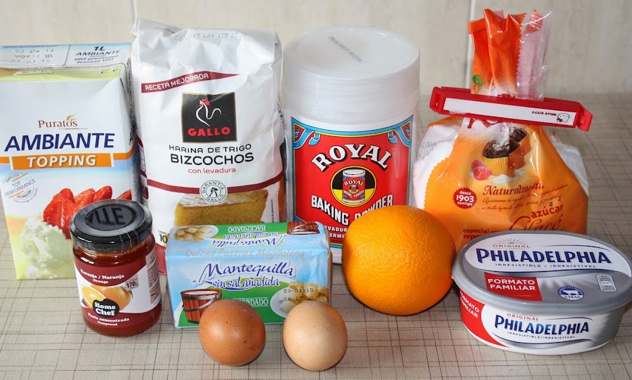 El zumo y la ralladura de una naranjaIngredientes para el frosting:
